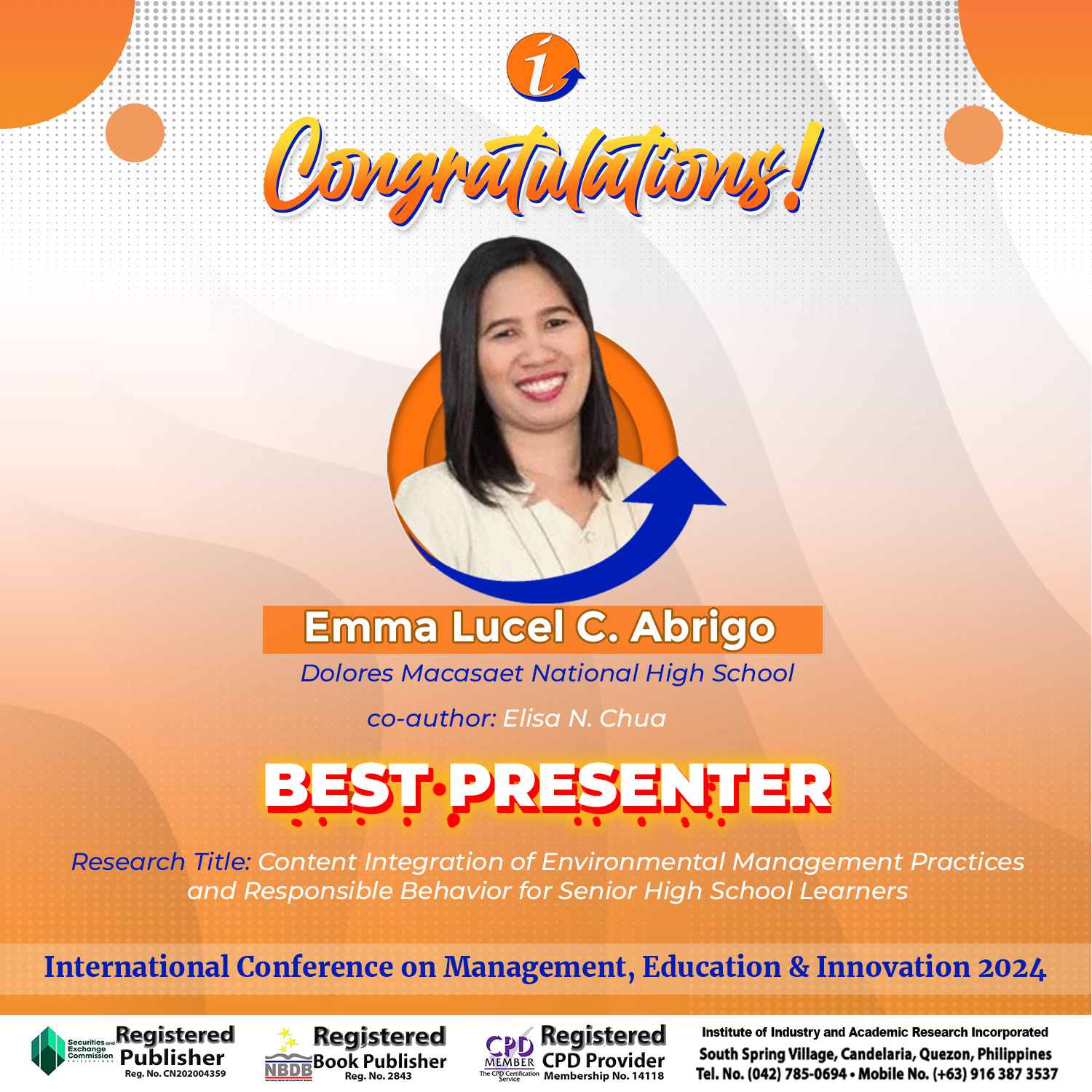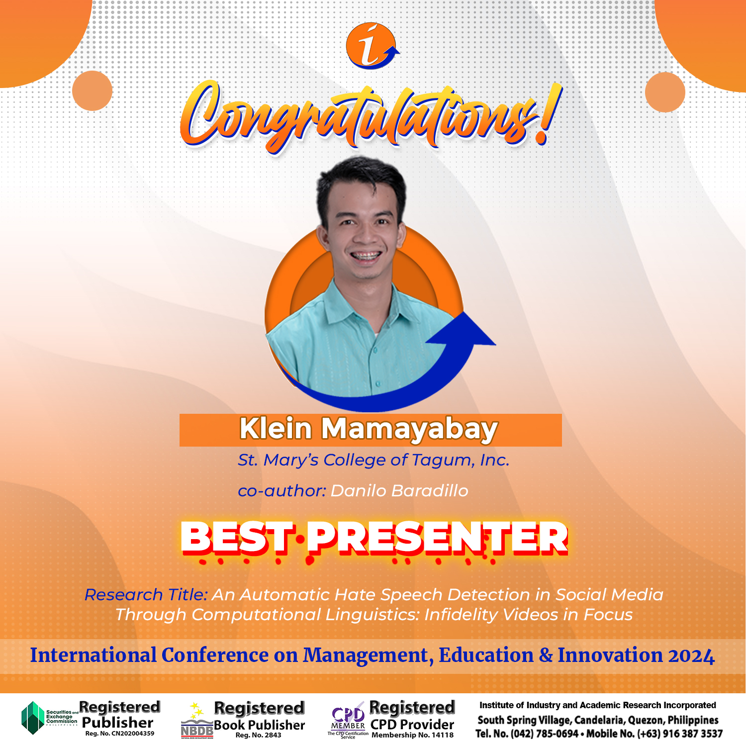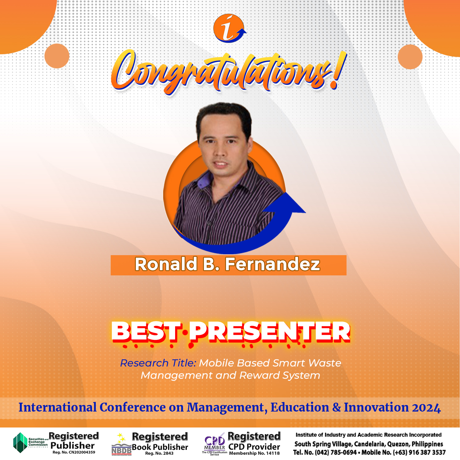 ICMEI-2024 Awardees – Best Presenter