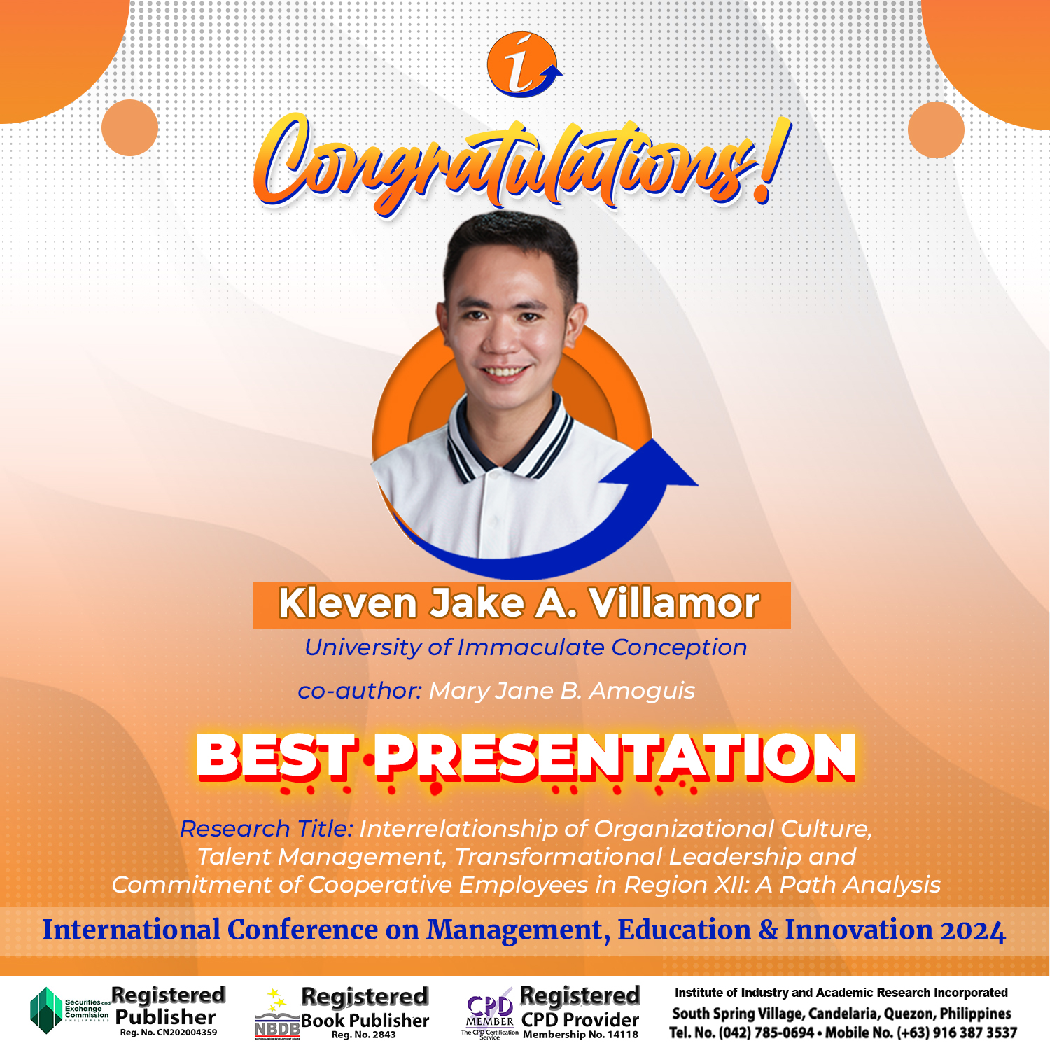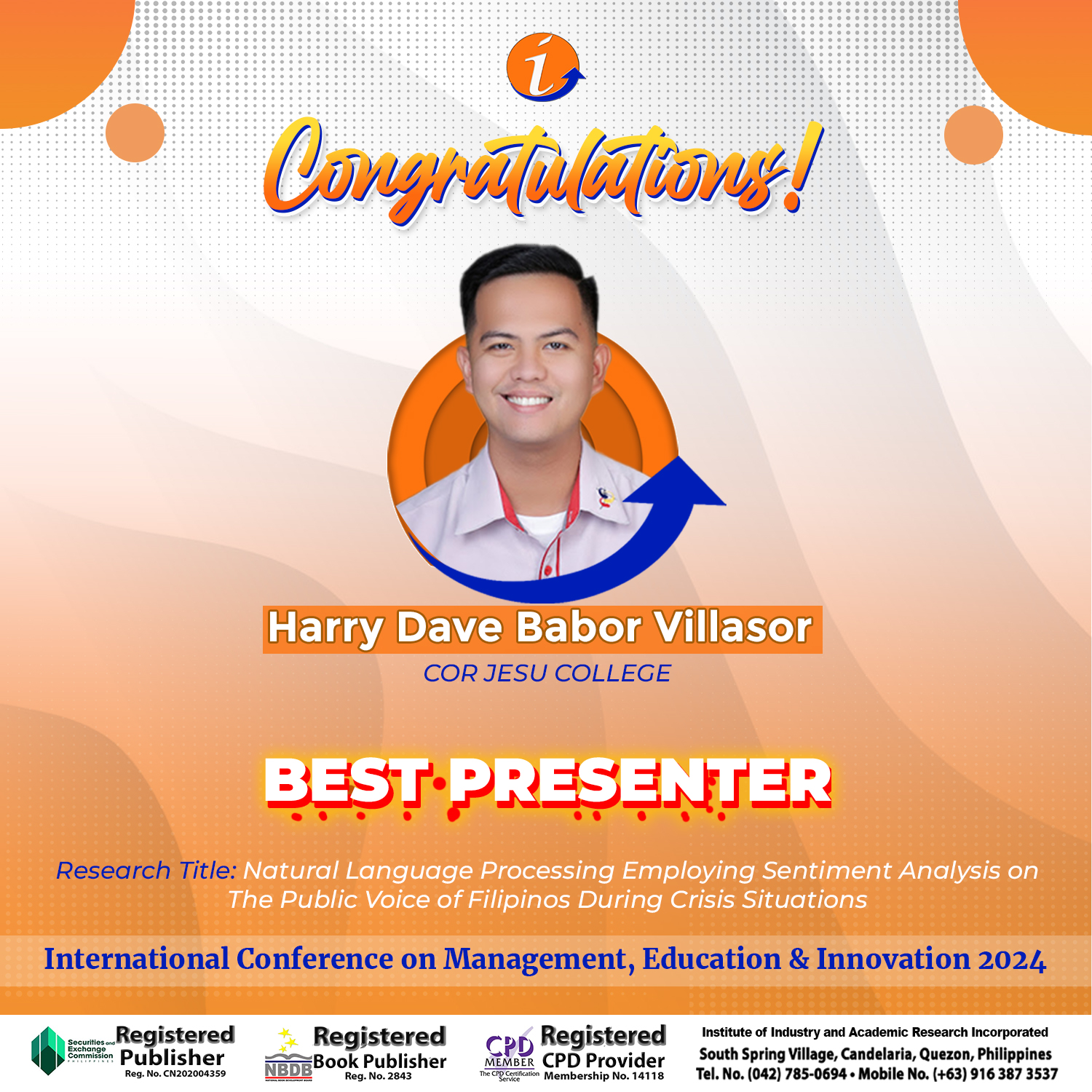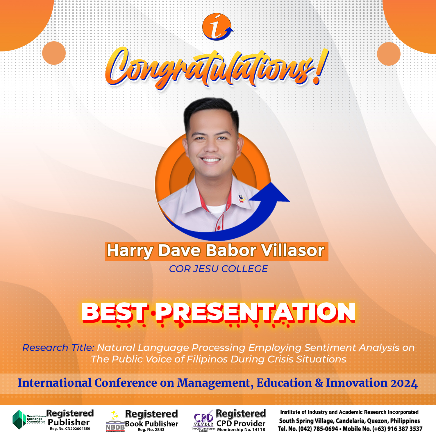 ICMEI-2024 Awardees – Best Presenter