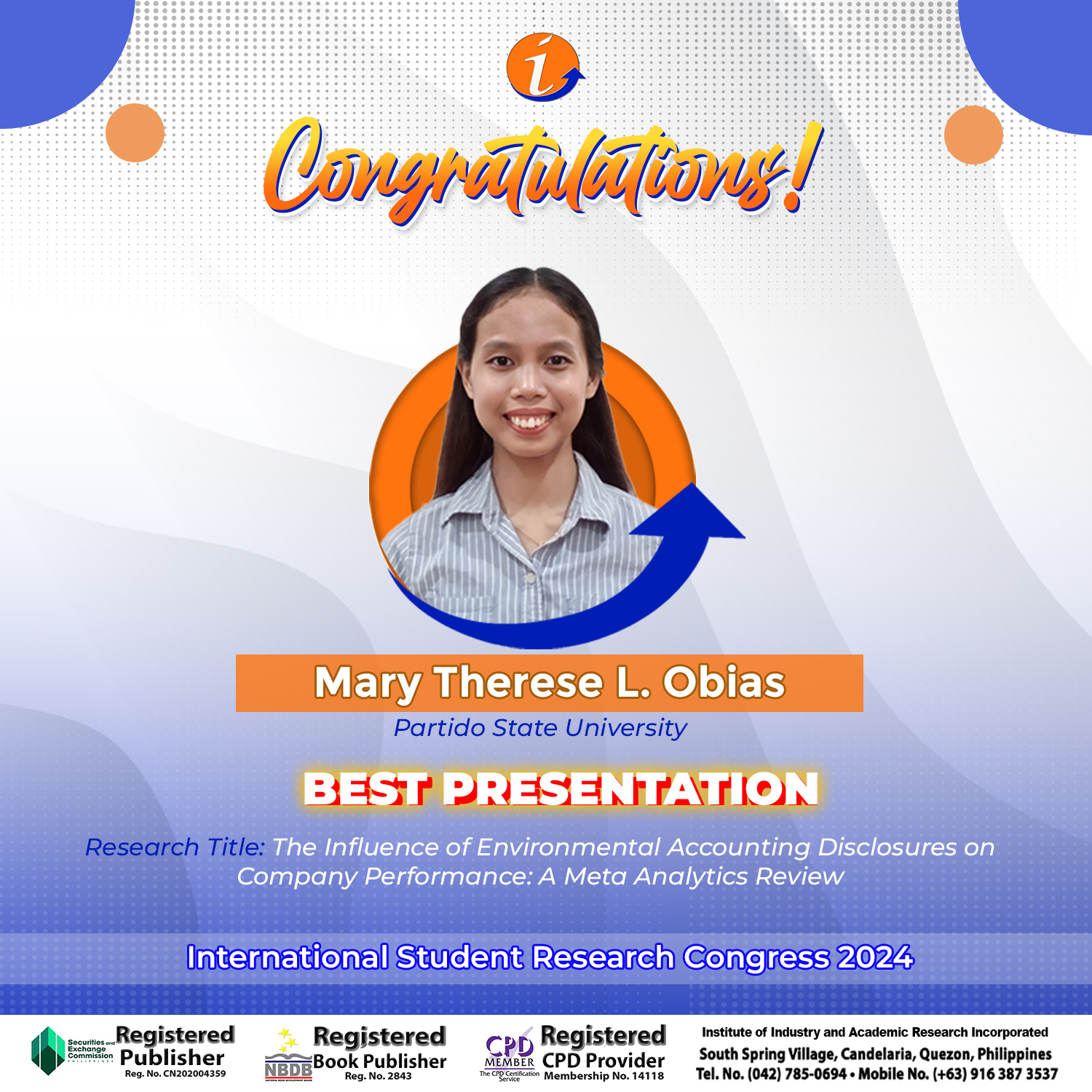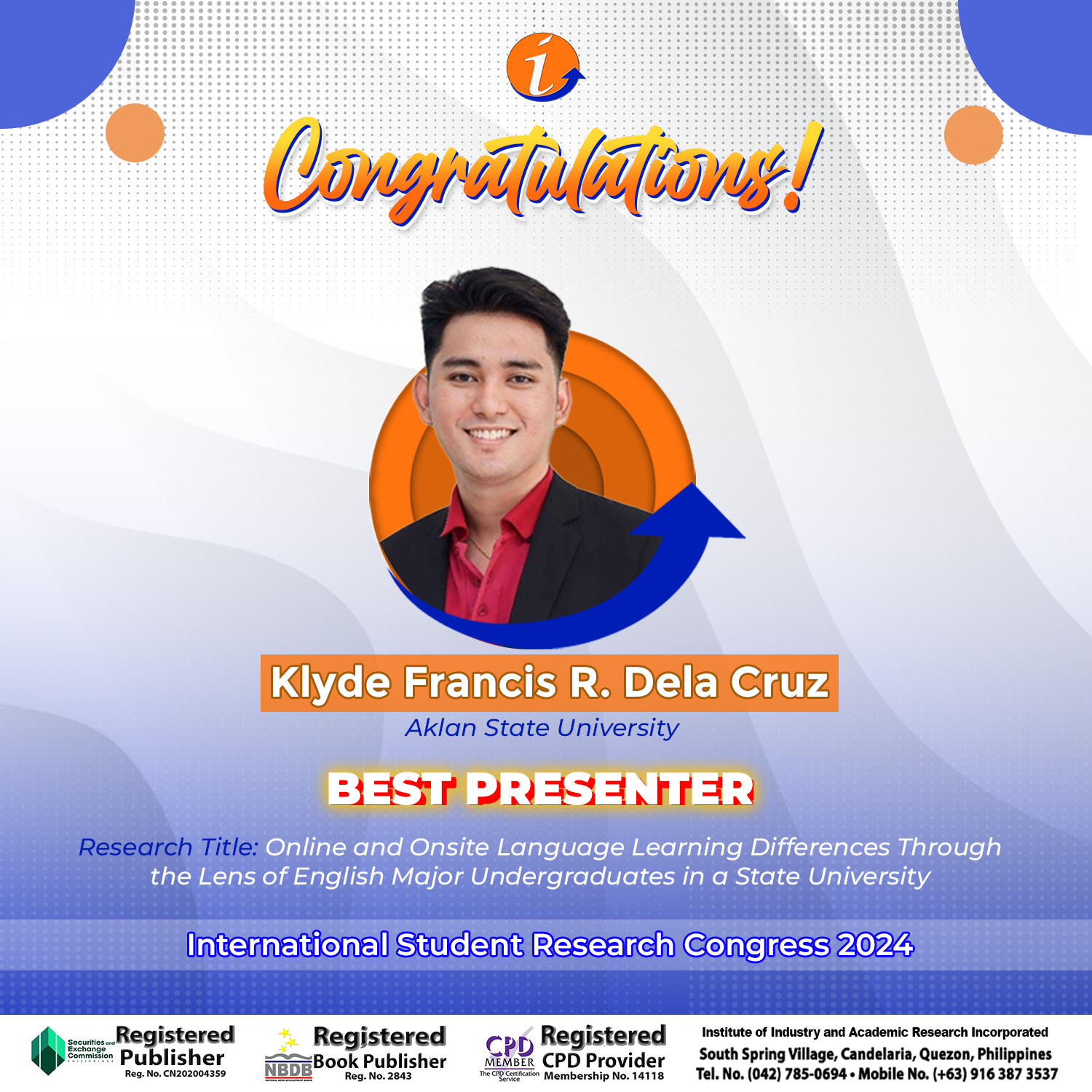ISRC-2024 Awardees – Best Presenter